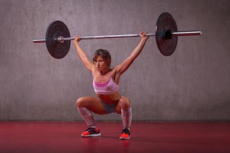 Es el primer ejercicio de competición. Consiste en levantar la barra desde el suelo hasta por encima de la cabeza con una completa extensión de los brazos en una sentadilla, todo en un solo movimiento. Este ejercicio es el más técnico dentro el levantamiento de pesas.